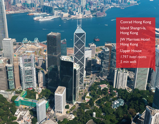Hong Kong’s most prestigious clubs, celebrated restaurants, luxury shopping malls and 5-star hotels are all just a short stroll away. If you fancy escaping into greenery and nature, Hong Kong Park and the Zoological & Botanical Gardens are on your doorstep.
