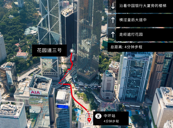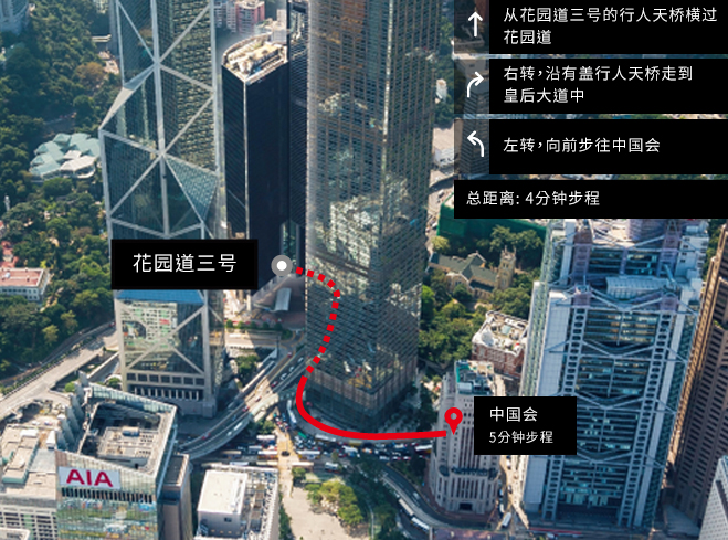 花园道三号位于香港金融中心的核心地段,全球最大的银行 — 中国工商银行正位处于此,让您尽握全球金融脉搏。坐拥居高临下的地利,俯瞰全球首屈一指的金融机构,包括香港三大发钞银行(中国银行,香港上海汇丰银行及渣打银行),并毗邻多间国际金融机构包括高盛、友邦保险、美银美林,以及多间对冲基金、私募股权基金及资产管理公司,近在咫尺之内。