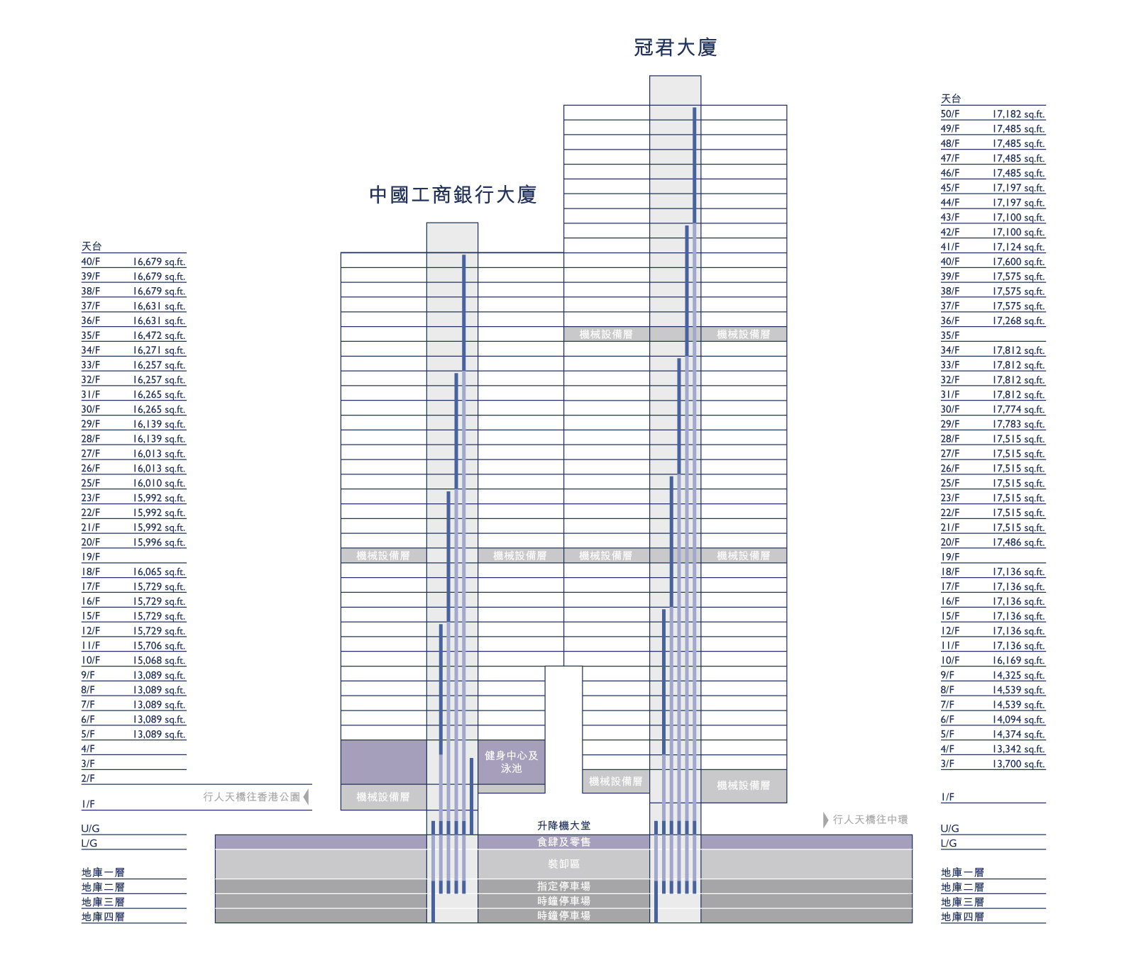 花园道三号提供国际级水平的甲级写字楼楼面。楼高47层,两座玻璃幕墙大楼气势磅礡,耀眼夺目;身处国际级的工作环境,俯瞰香港最具代表性的壮丽景色。