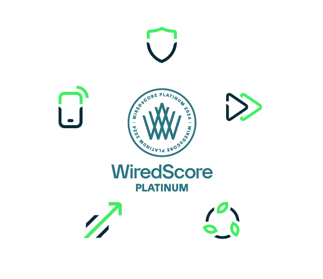 花园道三号获得 WiredScore 楼宇通讯铂金级认证是 一项卓越的成就,凸显了冠君产业信托致力为楼宇提供先进数码基础设施的坚定承诺。这一认可不但展示了其为旗下物业资产引入创新且具前瞻性的策略,同时致力确保使用者可享用到顶级、可靠和面向未来的数码 设施,在现今瞬息万变的环境中脱颖而出。